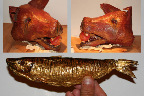 Materials: Latex, felt / latex polystyrene Comment; Fake food for two magic shows